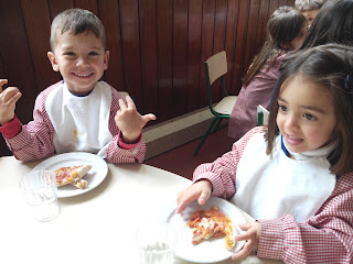 Esta semana os meninos do Bibe Castanho confecionaram pizzas doces para o seu lanche.